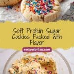 These protein sugar cookies are soft, chewy, and a healthier way to satisfy your sweet tooth! Made with simple pantry staples, they deliver 9 grams of protein per cookie, making them an ideal treat for a nutritious snack or dessert.