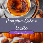 Pumpkin crème brûlée is a rich and creamy custard infused with warm spices and pumpkin puree, topped with a crisp, caramelized sugar crust for the perfect fall dessert.