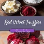 I store red velvet truffles in an airtight container in the fridge for up to 5 days. They also freeze well for longer storage—I freeze them in a single layer, then transfer to a container. I don’t reheat these; I just let them sit at room temperature for a few minutes before serving.