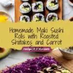 This Roasted Shiitake and Veggie Maki Sushi with Carrot Ginger Dipping Sauce Recipe makes about 3 rolls, enough to serve 2 people generously. The preparation time is approximately 1 hour, mainly due to the roasting and cooking of the rice, which requires careful attention to detail for the best texture. The cooking time is about 20 minutes to roast the mushrooms and carrots. Altogether, including resting and assembly, expect a total time of 1 hour 20 minutes. It’s worth every minute, trust me!