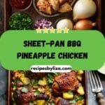 Sheet-Pan BBQ Pineapple Chicken is a vibrant, one-pan meal full of sweet, smoky, and savory flavor. Juicy chicken bakes alongside caramelized pineapple and colorful veggies, all tossed with tangy BBQ sauce for a tropical-inspired dinner with easy cleanup.