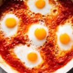 While you can freeze the sauce portion of this Shortcut Eggs in Purgatory Recipe separately, I don’t suggest freezing the eggs themselves after cooking, as the texture changes and becomes grainy. If you want to freeze, ladle the sauce (without eggs) into freezer-safe containers or bags and store for up to 3 months. When you’re ready to enjoy, thaw overnight in the fridge and gently reheat before adding fresh eggs to poach.