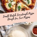 This Small Batch Sourdough Pizza Dough recipe uses excess sourdough starter discard to create an airy and chewy pizza crust. Perfect for making two 8-inch pizzas, this dough requires minimal active prep time but needs a long fermentation for maximal flavor and texture. The dough is prepared using the stretch and fold method, rested overnight in the fridge, then baked at high heat to achieve a crisp and blistered crust.