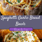 Spaghetti Garlic Bread Bowls combine two comfort food favorites—garlic bread and spaghetti—into one cheesy, crispy, and satisfying dish. Each hollowed-out bread bowl is toasted with garlic butter, filled with saucy pasta, topped with melty cheese, and baked until bubbly.