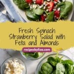 A fresh and vibrant Spinach Strawberry Salad featuring tender baby spinach, juicy strawberries, tangy feta cheese, crunchy sliced almonds, and a zesty homemade basil vinaigrette. This salad is perfect for a quick and healthy meal or side dish that bursts with flavor and color.
