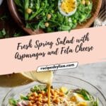 One of the best things about this Spring Salad with Asparagus, Peas, Feta, and Fresh Herbs Recipe is its flexibility. If you want to switch things up, you can swap the feta for goat cheese or even a creamy vegan alternative to keep it dairy-free. For a nut-free version, omit the pine nuts and substitute pumpkin seeds or sunflower seeds for crunch.