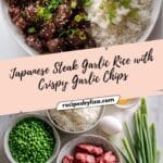 Experience the rich flavors of Japanese-inspired Steak Garlic Rice, featuring tender seared sirloin steak tossed in smoky steak sauce, served over buttery garlic rice with a delightfully crispy crust. This quick and easy dish is finished with crunchy garlic chips and fresh scallions for an irresistible texture and depth of flavor, perfect for a satisfying meal in just 30 minutes.