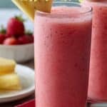- Assemble the Smoothie: Spoon about one-third of the pineapple smoothie mixture into glasses. Add a spoonful or two of the strawberry puree on top, then lightly swirl using a butter knife to create a marbled effect. Repeat layering twice more, finishing with the strawberry swirl on top.