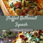 I love how stuffed butternut squash turns a simple vegetable into a complete, satisfying meal. It’s a beautiful dish to serve—especially around the holidays—and it’s easy to make ahead or customize depending on what I have on hand. Whether I’m making a vegetarian version or adding sausage or ground turkey, it always feels like a hearty, wholesome dinner that doesn’t take a ton of effort. Stuffed Butternut Squash