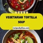 A warm and flavorful Vegetarian Tortilla Soup made with a rich tomato base, beans, vegetables, and bold spices. Topped with crunchy tortilla strips and fresh garnishes, this hearty soup is comforting, nourishing, and easy to customize.