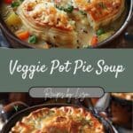 Veggie Pot Pie Soup is my cozy, meatless twist on the classic comfort food. It has all the creamy richness of a pot pie filling—tender vegetables, a velvety broth, and herb flavor in every bite—without the crust. It’s warm, hearty, and perfect for chilly nights when I want something satisfying, simple, and nourishing.